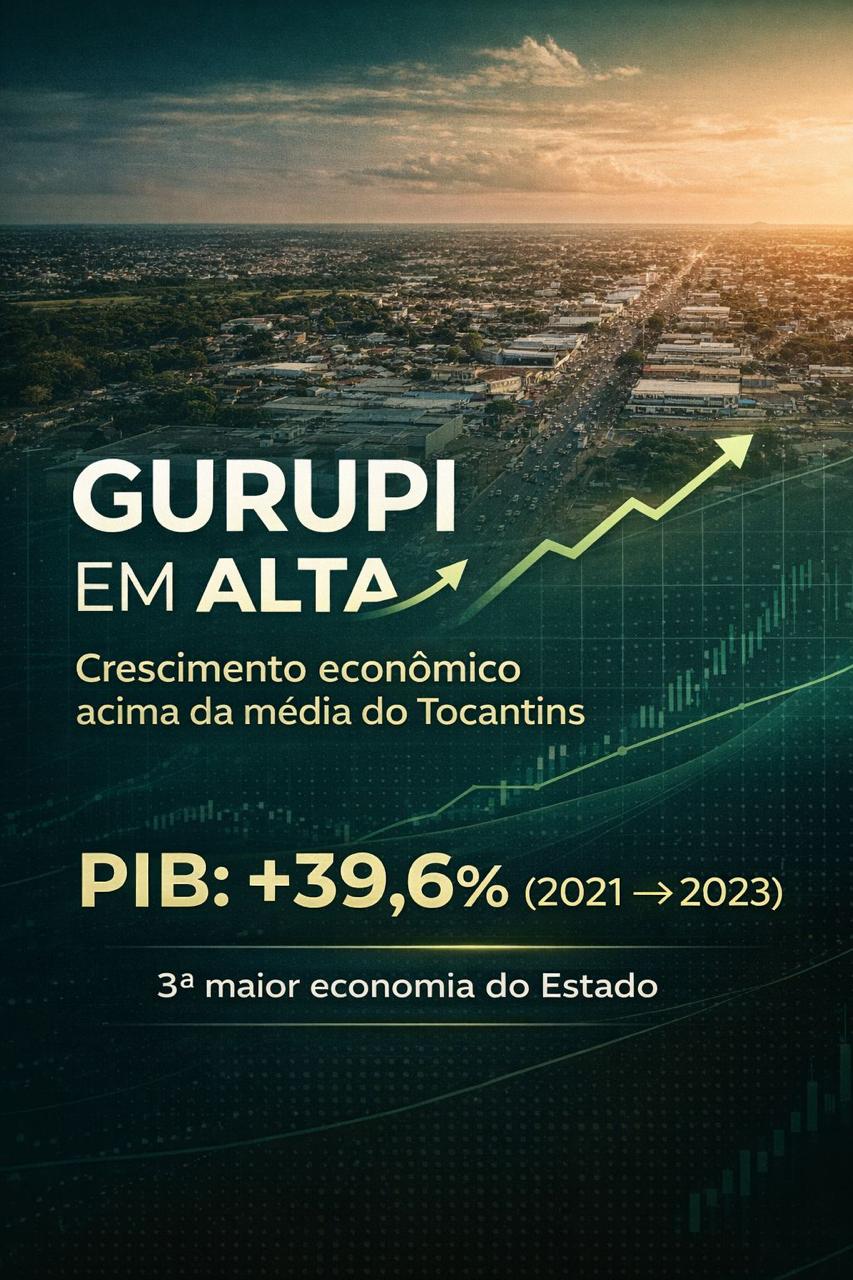 Gurupi reafirma sua força econômica e consolida sua posição como um dos principais polos de desenvolvimento do Tocantins. O município alcançou o 3º maior Produto Interno Bruto (PIB) do Estado, no valor de R$ 3,7 bilhões, ficando atrás apenas de Palmas e Araguaína, conforme levantamento que considera o período de 2021 a 2023, do Instituto Brasileiro de Geografia e Estatística (IBGE).