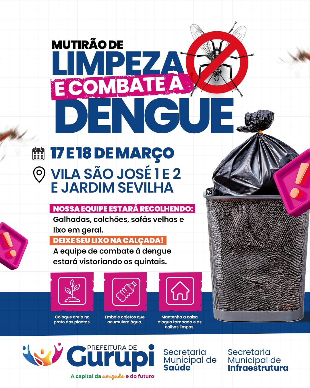 Prefeitura de Gurupi realiza mutirão de limpeza e combate à dengue na Vila São José 1 e 2 e Jardim Sevilha