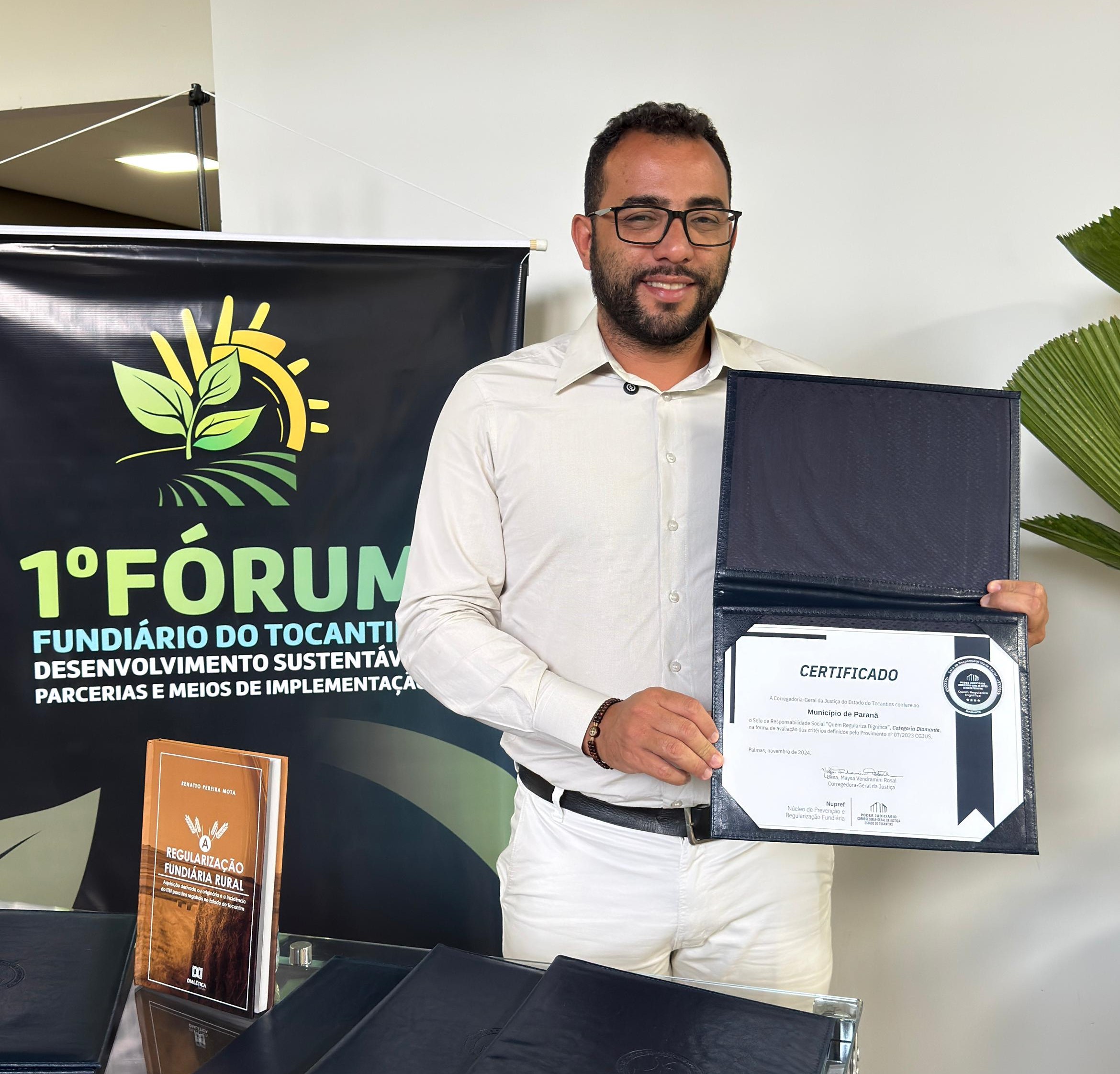 Prefeitura de Paranã conquista Selo Diamante de Responsabilidade Social por desempenho na regularização fundiária