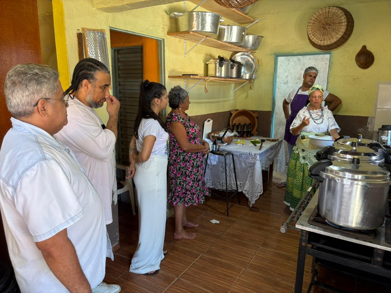 Já a Oficina de Gastronomia Tradicional Afro-Brasileira trabalha a culinária ancestral e de terreiros, os alimentos sagrados e sua relação com os orixás, práticas de higiene e segurança alimentar, preparo de pratos tradicionais, uso de ervas e temperos, além de noções de comercialização. A formação foi ministrada pela Iyalorixá Mariana Vieira e pela Egbome Fabiana Alves.