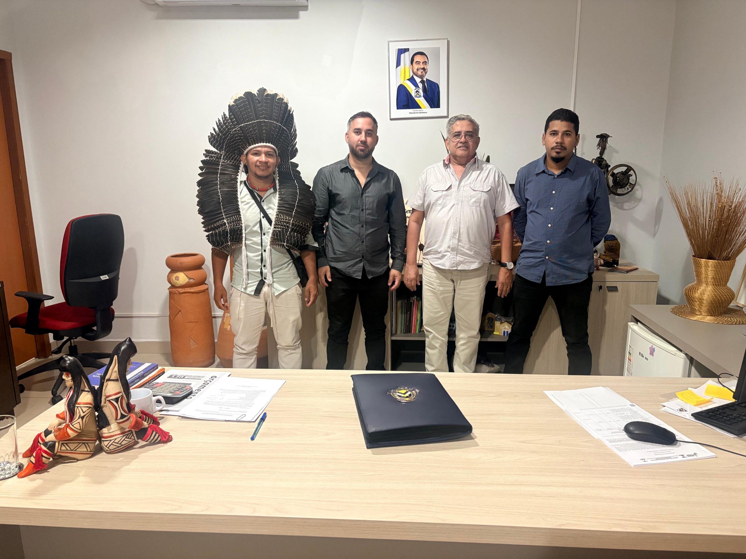 A visita também contou com a presença dos produtores Leandro de Alcântara e Romário Srowasde Xerente, que também integra o elenco do documentário.