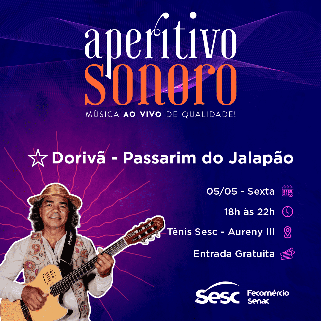 Projeto que busca oferecer à população acesso gratuito à boa música popular brasileira, por meio de um rodízio entre músicos de Palmas e de outras cidades do Estado e do país. As apresentações são ao vivo e acontecem sempre na unidade Tênis Sesc, que fica no Jardim Aureny III.
