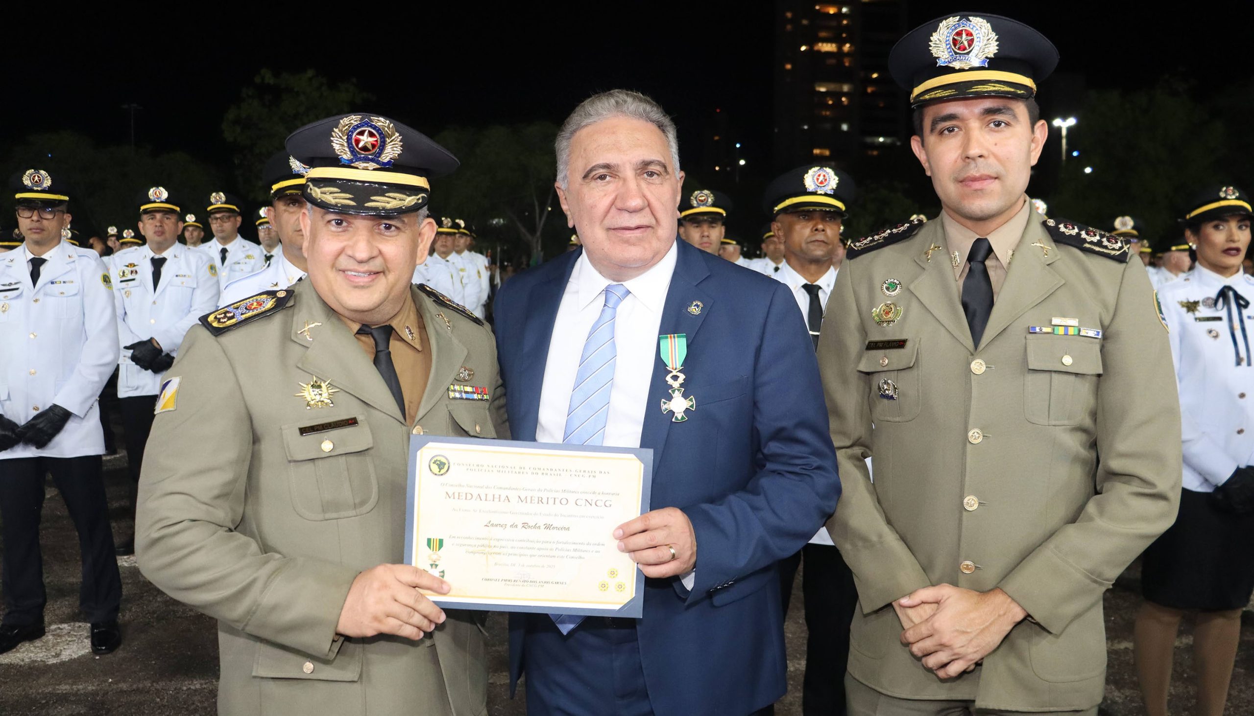 O governador Laurez Moreira foi condecorado com a medalha do Conselho Nacional de Comandantes-Gerais (CNCG), em reconhecimento ao seu apoio incondicional à Segurança Pública estadual.
