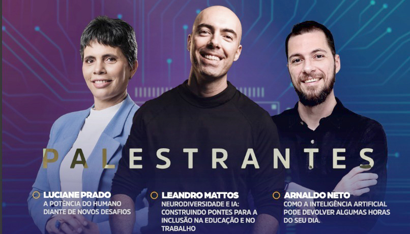 A Rota de Inovação será realizada nesta quarta-feira, 29, e começará às 8h30 com a abertura oficial e falas de autoridades. Em seguida, às 9 horas, Arnaldo Neto apresentará a palestra Como a Inteligência Artificial pode devolver algumas horas do seu dia; às 10h30, Luciane Prado discorrerá sobre A Potência do Humano Diante de Novos Desafios; e às 14 horas, Leandro Mattos encerrará com o tema Neurodiversidade e IA – Construindo Pontes para a Inclusão na Educação e no Trabalho.
