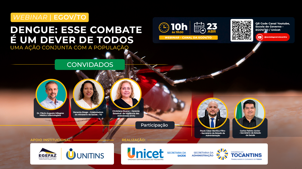 Escola de Governo do Tocantins promove webinar sobre combate à dengue, uma das principais arboviroses do mundo