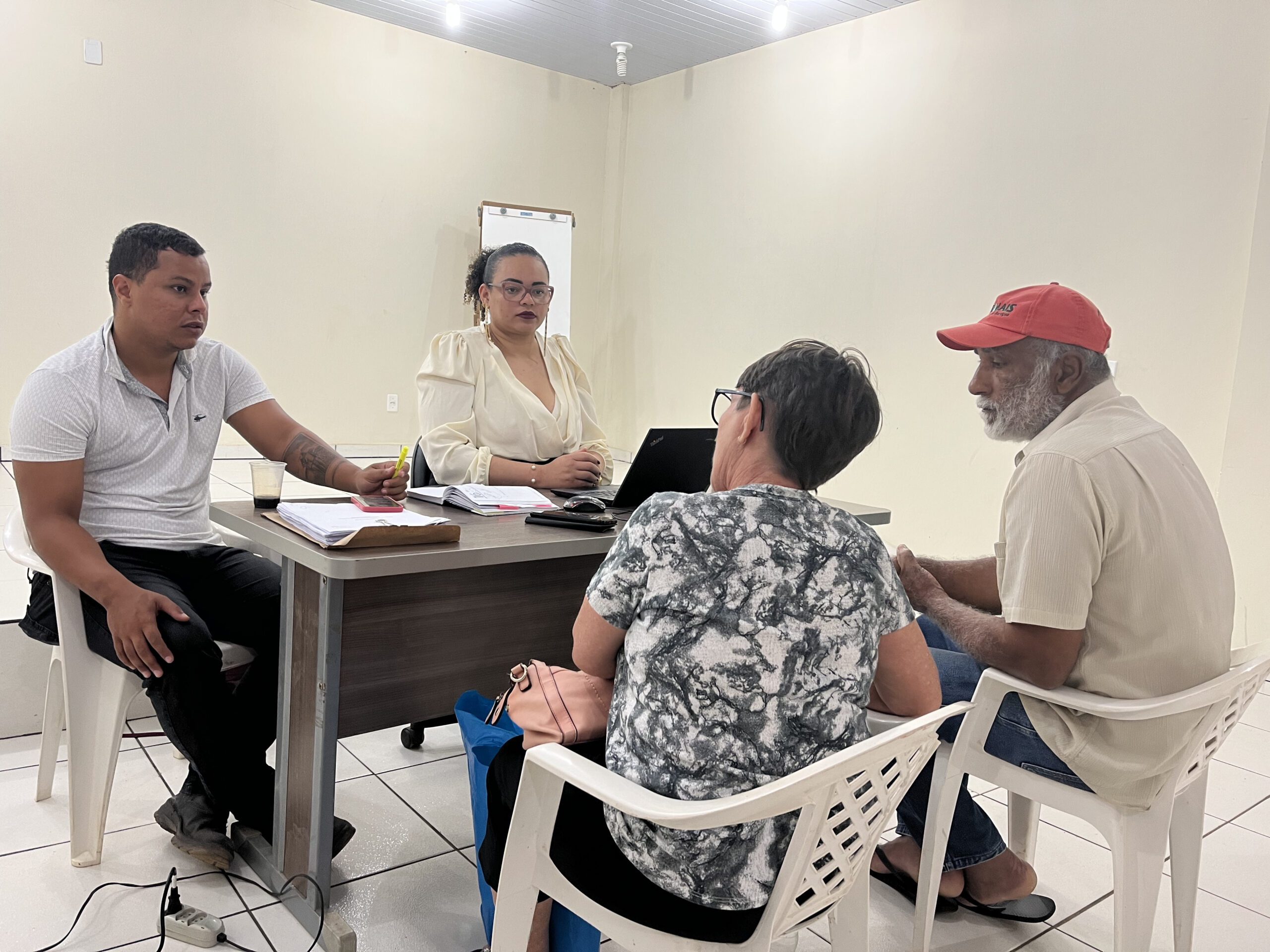 A produtora, Carmelita Lustosa da Silva, acompanhada do filho, Wanderson Borges da Silva, buscou atendimento para regularização do lote. “O terreno que cultivamos é propriedade do Estado e tem alguns débitos. Estamos buscando orientação sobre como negociar essas dívidas pendentes e transferir a titularidade para nossa responsabilidade”, compartilhou Wanderson.