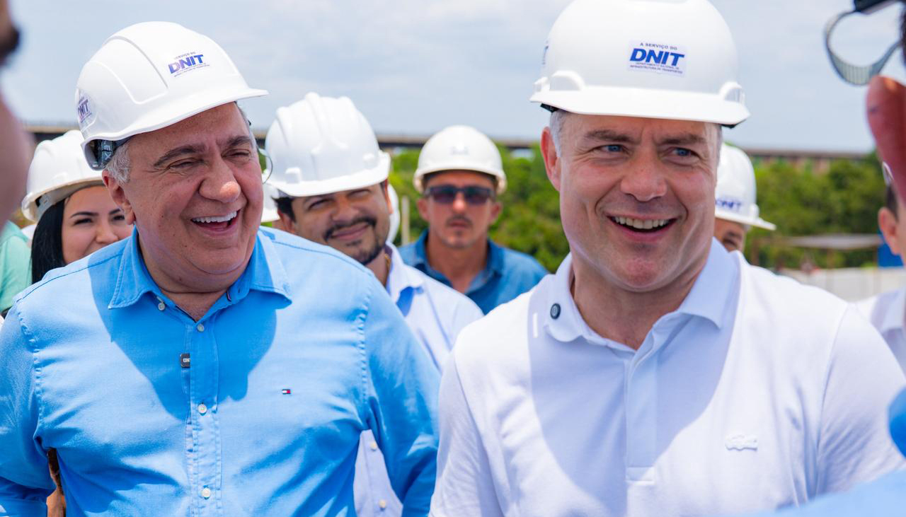 O governador do Tocantins, Laurez Moreira, e o ministro dos Transportes, Renan Filho, fizeram, nesta sexta-feira, 7, a vistoria final das obras da nova ponte sobre o Rio Tocantins, que liga Aguiarnópolis/TO a Estreito/MA. A agenda encerrou a passagem do ministro pelo estado em visita às obras estruturantes do Tocantins. Na ocasião, o ministro anunciou que a conclusão da ponte está prevista para dezembro deste ano. Também participaram da agenda o governador do Maranhão, Carlos Brandão, e o ministro dos Esportes, André Fufuca.