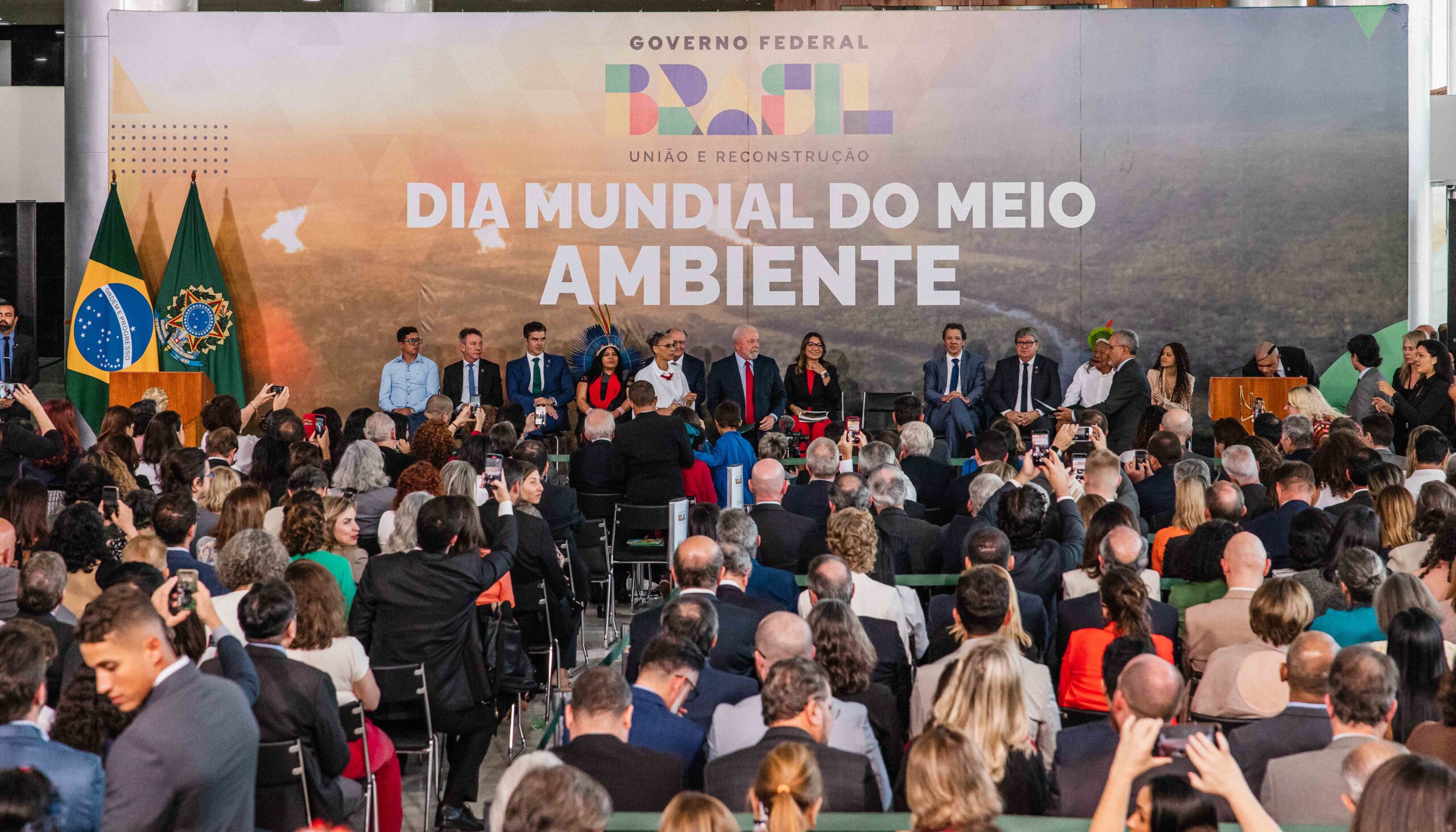 Nesta segunda-feira, 5, quando se comemora o Dia Mundial do Meio Ambiente, foi realizada no Palácio do Planalto em Brasília, uma cerimônia alusiva ao tema, com a presença do presidente Luiz Inácio Lula da Silva, da ministra do Meio Ambiente e Mudança do Clima, Mariana Silva, dentre outras autoridades. O secretário Extraordinário de Representação do Tocantins, Carlos Manzini, e o secretário-chefe da Casa Civil, Deocleciano Gomes Filho, participaram do evento.