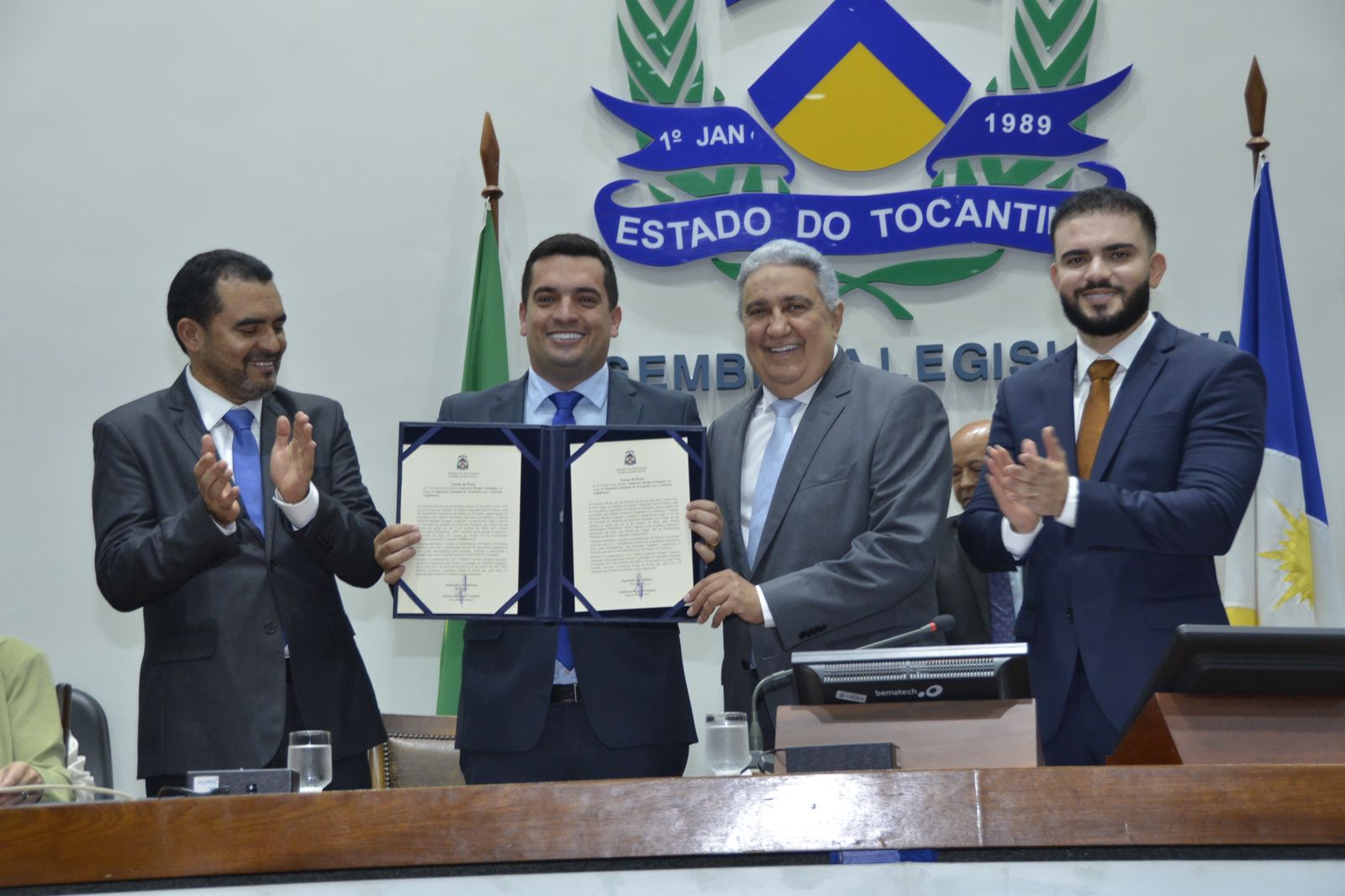 “Eu estou muito feliz com esse momento que estamos vivendo. Eu sempre sonhei muito em dar a minha contribuição pro Estado e hoje eu vivo uma das grandes alegrias de toda a minha vida, pois, acabo de ser eleito 2º vice-presidente da Assembleia Legislativa do Tocantins. E aqui reafirmo o meu compromisso de poder lutar pelos interesses da coletividade e mostrar a capacidade que nós temos de construir um Estado com mais oportunidade”, destaca o deputado após assumir a posição na mesa diretora da Aleto pelos próximos dois anos.