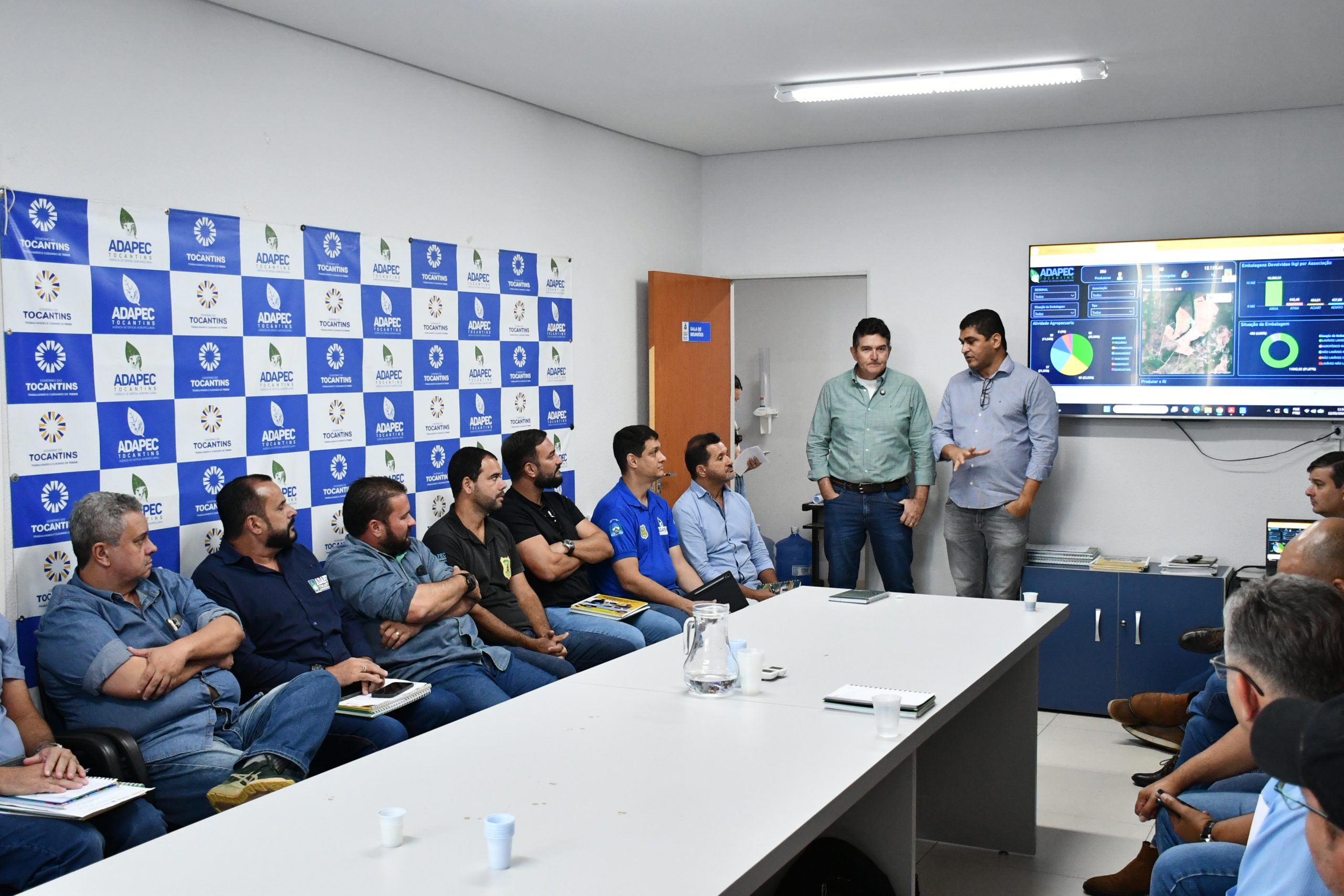 A Agência de Defesa Agropecuária do Tocantins (Adapec) realizou, nesta quinta-feira, 12, uma reunião com representantes do Instituto Nacional de Processamento de Embalagens Vazias (Inpev) e de associações de revendedores de insumos agropecuários para definir o calendário anual de Recebimento Itinerante (RI) de embalagens vazias de agrotóxicos no Estado para 2026.
